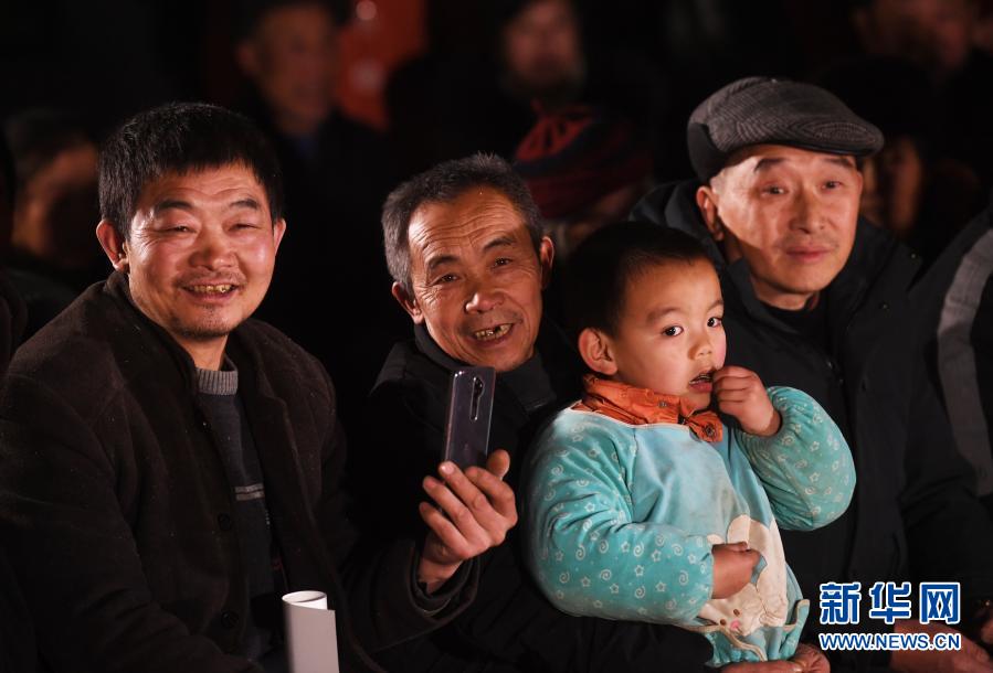 1月6日,毛相林(左二)和下莊村村民們一起觀看由巫山縣文化館組織的慰問演出。新華社記者 王全超 攝