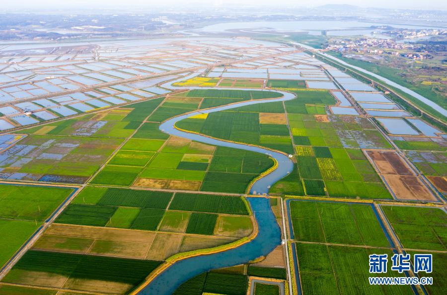 3月24日拍攝的江西省九江市彭澤縣芙蓉農場的田園風光(無人機照片)。