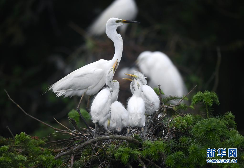 在南昌市新建區(qū)象山森林公園內(nèi),白鷺和雛鳥們在一起(5月18日攝)。