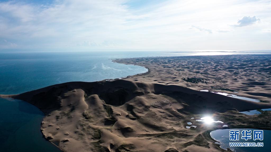 這是2020年7月28日拍攝的青海湖沙島一隅(無人機照片)。