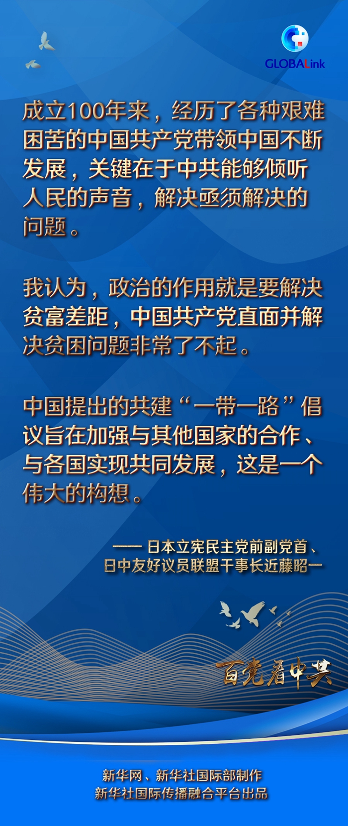 “在這100年中,中國共產(chǎn)黨黨員付出了巨大努力,取得了豐碩成果。”近藤表示。