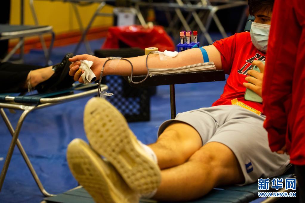 6月14日,在美國紐約州長島地區的尤寧代爾,獻血志愿者在美國紐約血液中心舉行的獻血活動上獻血。