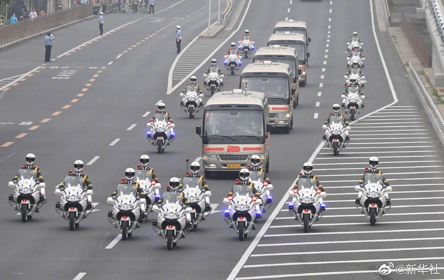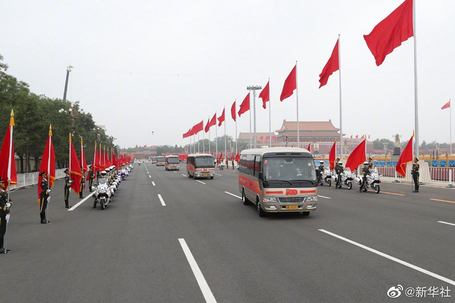 29日上午,“七一勛章”獲得者集體乘坐禮賓車(chē)從住地出發(fā),由國(guó)賓護(hù)衛(wèi)隊(duì)護(hù)衛(wèi)前往人民大會(huì)堂。