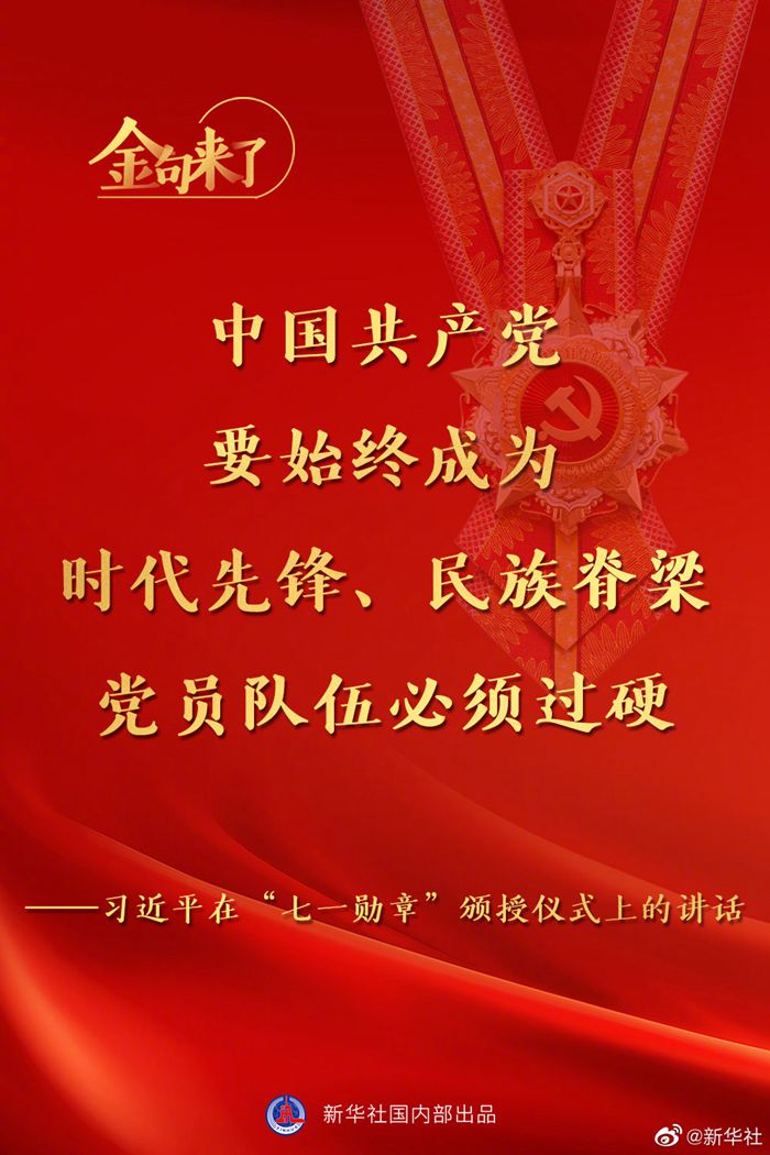 習(xí)近平說,新時代是需要英雄并一定能夠產(chǎn)生英雄的時代。中國共產(chǎn)黨要始終成為時代先鋒、民族脊梁,黨員隊伍必須過硬。希望受到表彰的同志珍惜榮譽、發(fā)揚成績,爭取更大光榮。各級黨組織要從工作和生活上關(guān)心愛護功勛黨員,大力宣傳“七一勛章”獲得者的感人事跡和崇高品德,在全黨全社會形成崇尚先進、見賢思齊的濃厚氛圍,激勵廣大黨員、干部牢記黨的性質(zhì)宗旨,牢記黨的初心使命,不懈奮斗,永遠奮斗,在全面建設(shè)社會主義現(xiàn)代化國家新征程上,向著第二個百年奮斗目標、向著中華民族偉大復(fù)興的中國夢奮勇前進!?