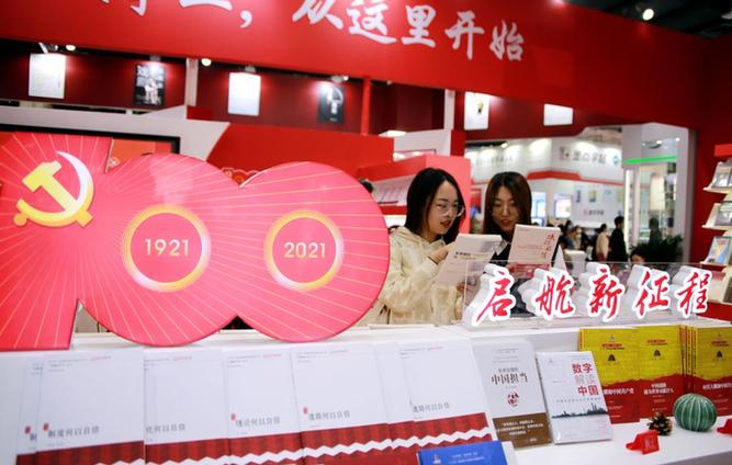 在會場最醒目位置特設慶祝建黨100周年主題圖書展區