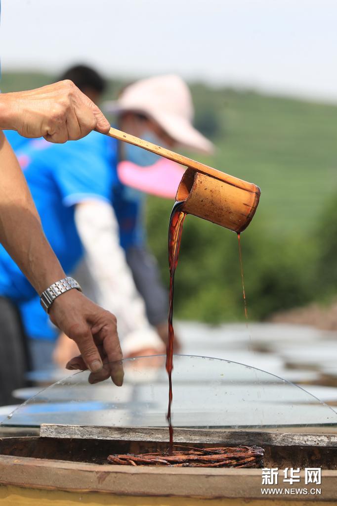 7月10日,工人在畢節(jié)市金沙縣禹謨鎮(zhèn)泡木灣醬醋基地查看醬醋發(fā)酵情況。貴州省畢節(jié)市金沙縣禹謨鎮(zhèn)是傳統(tǒng)醬醋生產(chǎn)大鎮(zhèn),年產(chǎn)陳醋2萬余噸。在長期的釀造實(shí)踐中,禹謨鎮(zhèn)利用當(dāng)?shù)鬲?dú)特的環(huán)境資源,用100多味中草藥與麥麩制曲,以當(dāng)?shù)貎?yōu)質(zhì)大米、玉米為原料,經(jīng)過70多道工序,經(jīng)一年以上露天發(fā)酵成獨(dú)特的“醬香醋”。該釀醋技藝2019年被列入貴州省級非物質(zhì)文化遺產(chǎn)名錄。今年以來,禹謨鎮(zhèn)將醬醋產(chǎn)業(yè)與旅游業(yè)結(jié)合起來一體化推進(jìn),把泡木灣醬醋基地打造成國家3A級景區(qū),有效拓寬當(dāng)?shù)厝罕娫鍪罩赂煌緩剑叱隽艘粭l工旅融合的鄉(xiāng)村振興新路。新華社發(fā)(韓賢普攝)