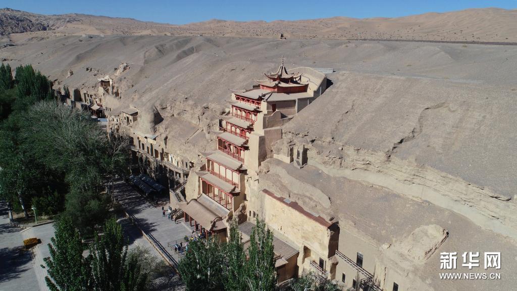 游客在敦煌莫高窟游覽(7月6日攝,無人機照片)。新華社記者 劉詩平 攝
