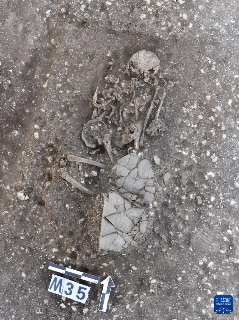 云南晋宁古城村遗址出土的商代屈肢葬(资料照片)。
