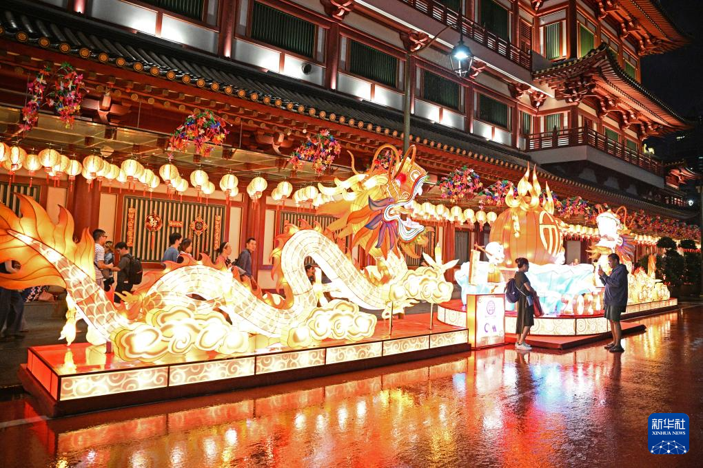 这是1月19日在新加坡牛车水拍摄的农历新年灯饰。新华社发(邓智炜 摄)