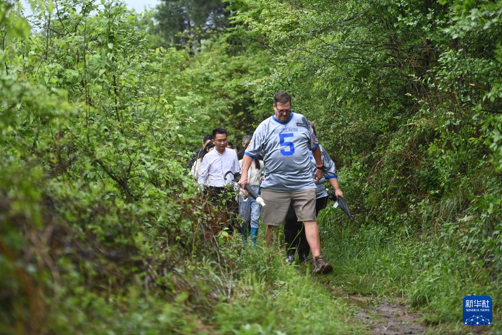 在衢州江山市大桥镇芳源村,获救美国军人后代走在通往“杜立特行动”威尔德降落点的山路上(4月16日摄)。
