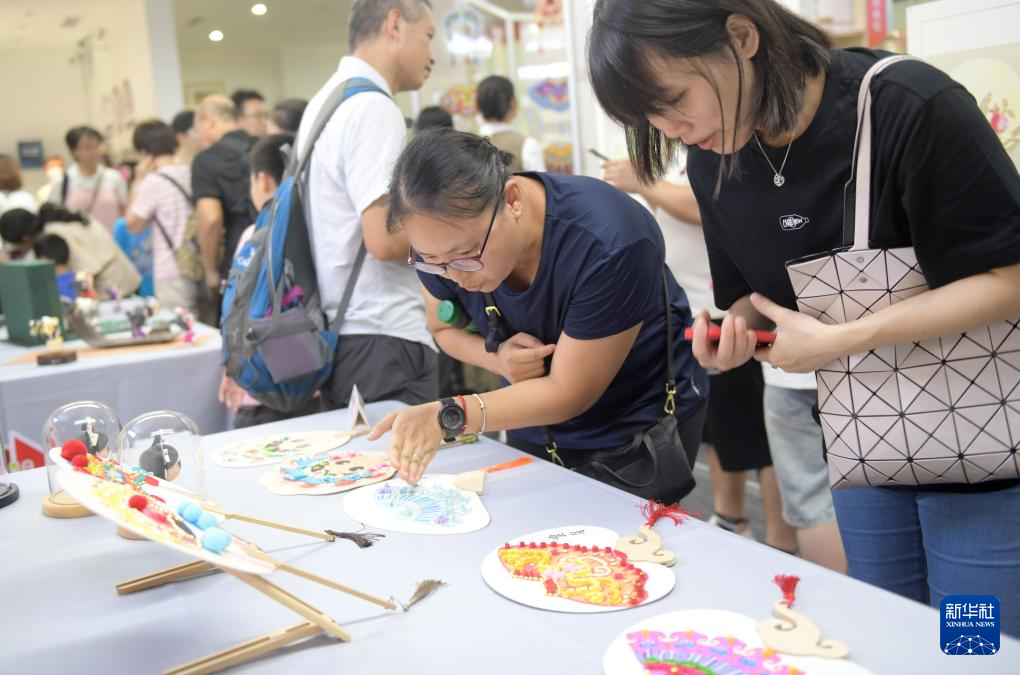 5月25日,市民在广州市文化馆参观乐贤坊小学学生的漆画作品。