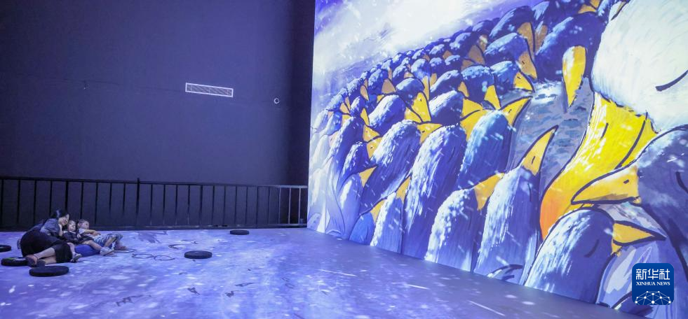 7月4日 ,参观者在沉浸式互动体验区观展。