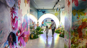 7月4日 ,参观者在“牛津话绘本世界沉浸式互动体验”展览上参观。