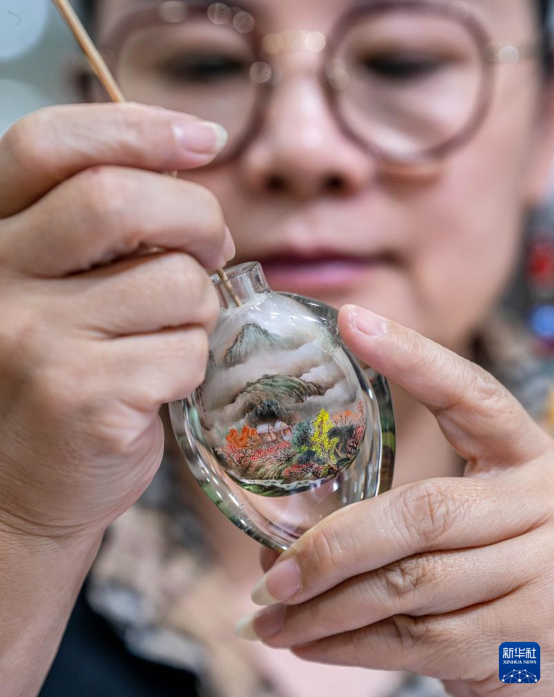 内画是我国特有的传统工艺。画师把特制的画笔,伸入狭窄的瓶口反向绘画,将大千世界镶嵌于方寸之间。“滇派内画”是现代内画技艺中一种独具云南风情的派别。