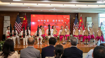7月17日,嘉宾在香港书展北京主题城市推介活动启动仪式上观看京剧《贵妃醉酒》。新华社记者 吕小炜 摄