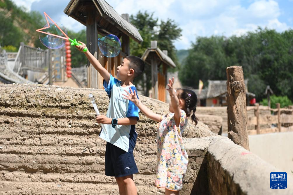 7月30日,小朋友在红崖老巷子玩耍。