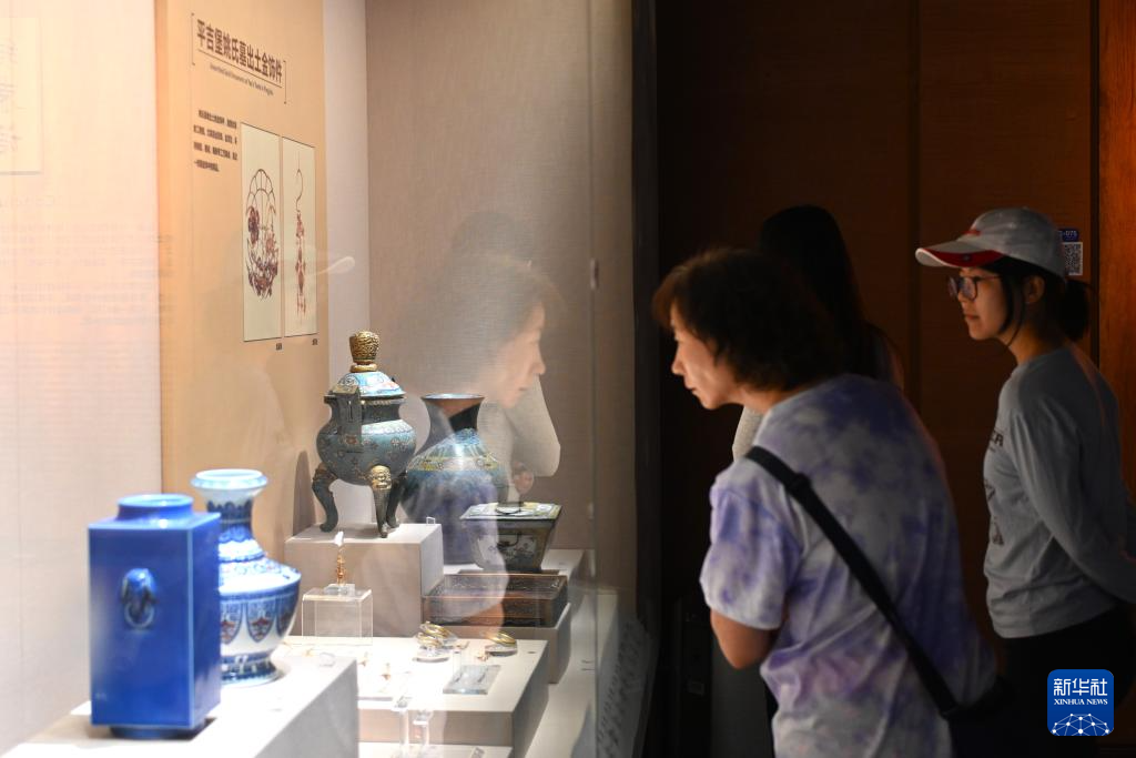9月1日,游客在宁夏博物馆观赏平吉堡姚氏墓出土文物。