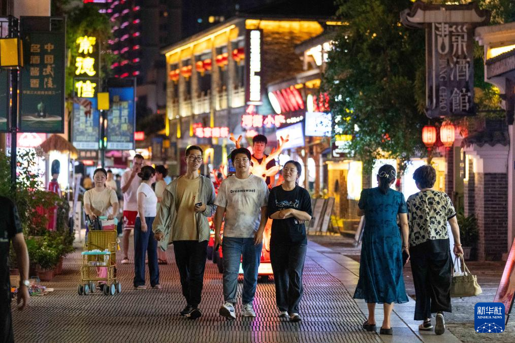 9月2日夜间,游客在常德河街游玩。