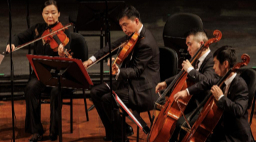 9月9日,在瑞士日内瓦维多利亚音乐厅,乐团演奏《黄河大合唱》。新华社记者 陈斌杰 摄
