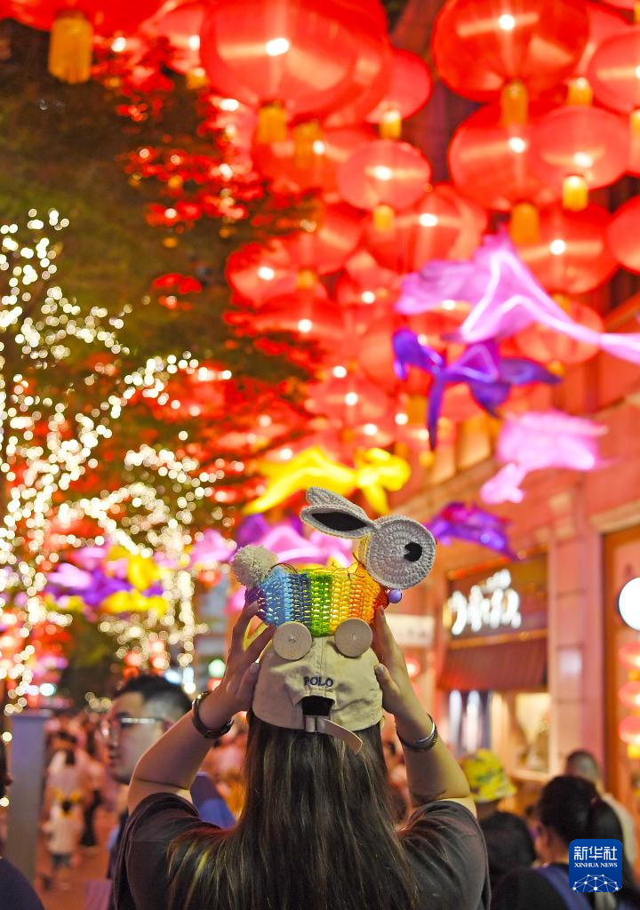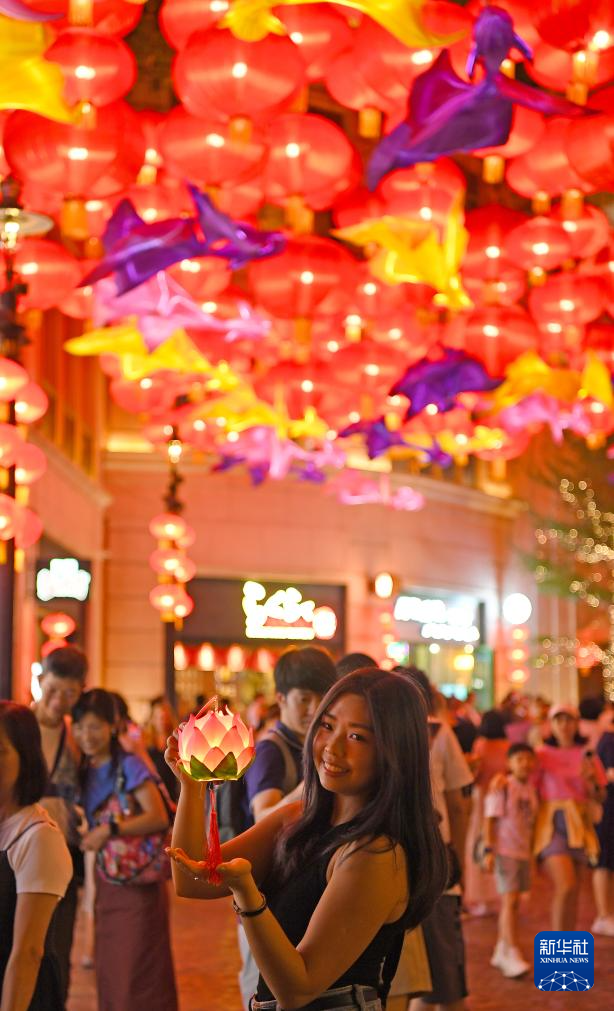 9月17日,人们在香港利东街赏灯,欢庆中秋佳节。新华社记者 陈铎 摄