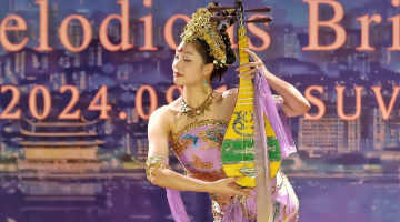 9月22日,北京市考古研究院工作人员向活动参与者介绍文源阁遗址中的蹬道遗迹。