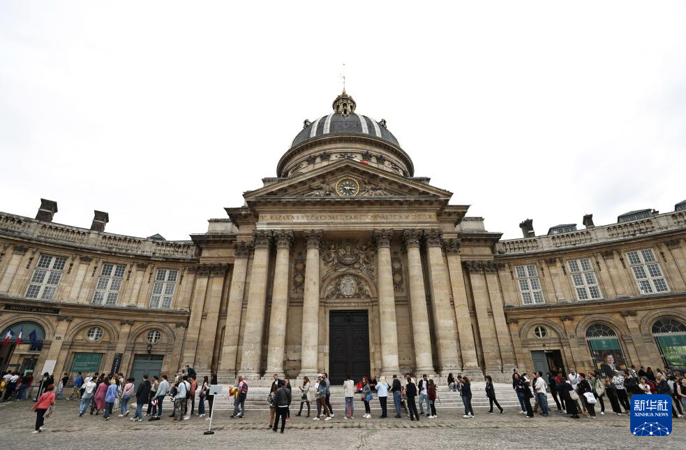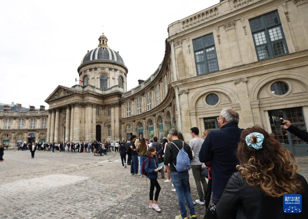 9月22日,在法国巴黎的法兰西学院,前来参观的人们在门前排起长队。