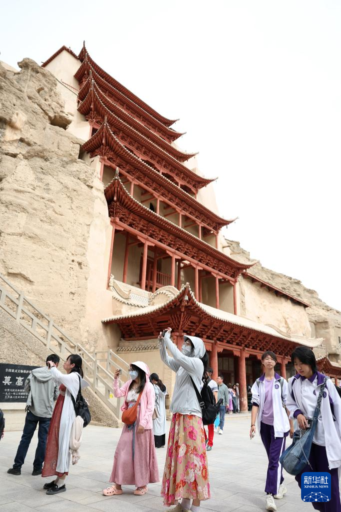 2024年6月7日,游客在莫高窟参观游览。新华社记者 郎兵兵 摄