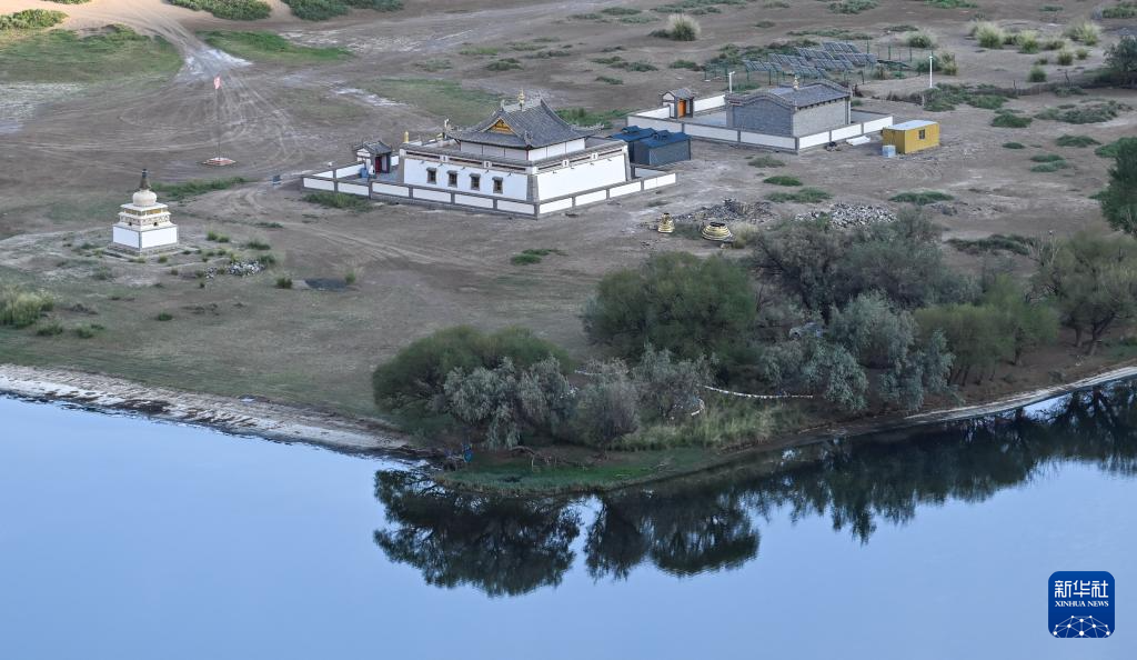 2024年7月30日拍摄的巴丹吉林沙漠中的音德日图湖(无人机照片)。新华社记者 贝赫 摄