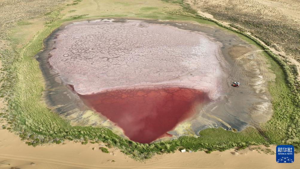 2024年7月30日拍摄的巴丹吉林沙漠中的红海子(无人机照片)。新华社记者 贝赫 摄