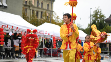 这是9月29日拍摄的第23届中国(揭阳)玉文化节开幕式上的醒狮表演。