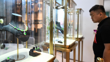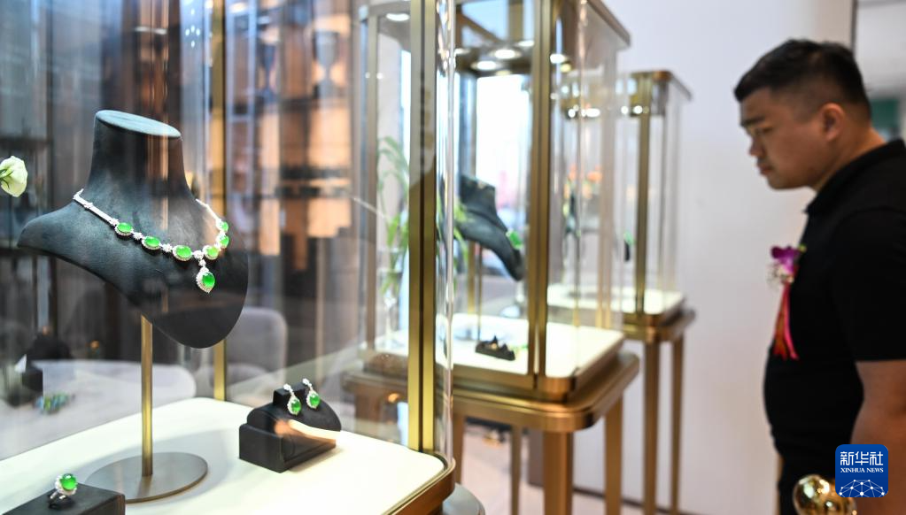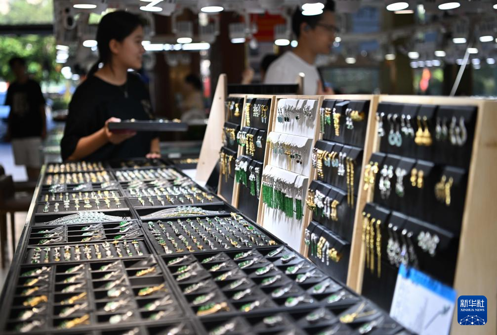 这是9月27日在揭阳百分玉器广场拍摄的翡翠首饰摊位。
