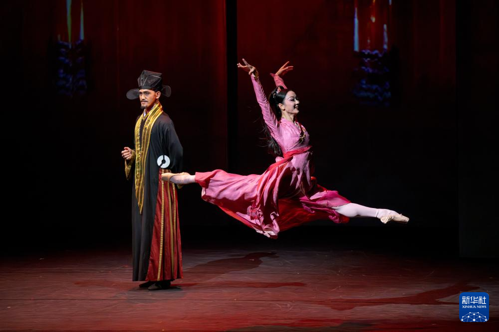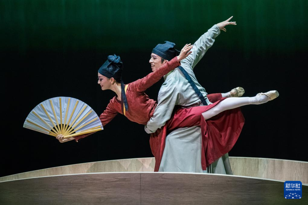 10月18日,演员在香港文化中心大剧院表演芭蕾舞剧《梁山伯与祝英台》。新华社记者 朱炜 摄