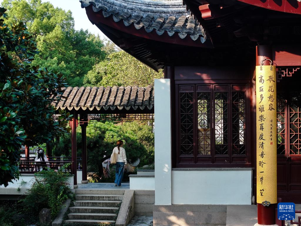 游人在留园参观游览(10月23日摄,无人机照片)。