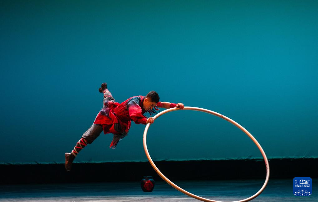 11月22日,在希腊雅典举行的第二届中希国际戏剧节上,广州杂技团演员表演杂技《滚环-酒中侠》。