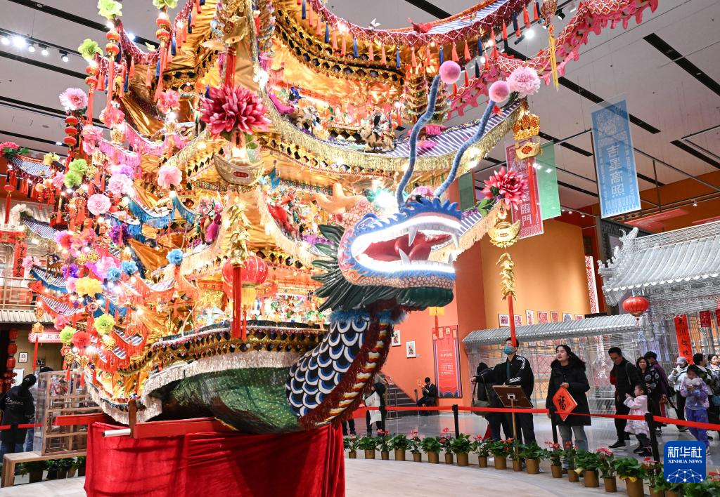 12月21日,观众在展厅内参观非遗项目——“龙船灯”展品。