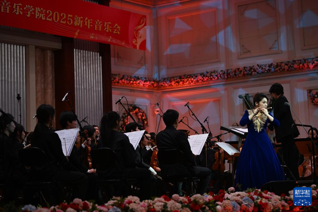 1月2日,演员在音乐会上演奏《春风春潮》。