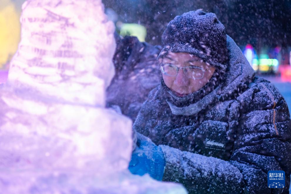 当日,在哈尔滨市兆麟公园举行的第44届全国专业冰雕比赛进入第2个比赛日,来自全国的冰雕师加紧创作冰雕作品。这些冰雕将作为公园冰雪景观的一部分,为市民游客献上一场冰雪艺术的视觉盛宴。