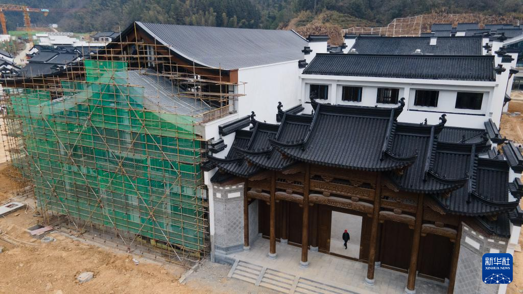 1月8日拍摄的安徽省黄山市休宁县一处传统徽派古民居复建工地现场。