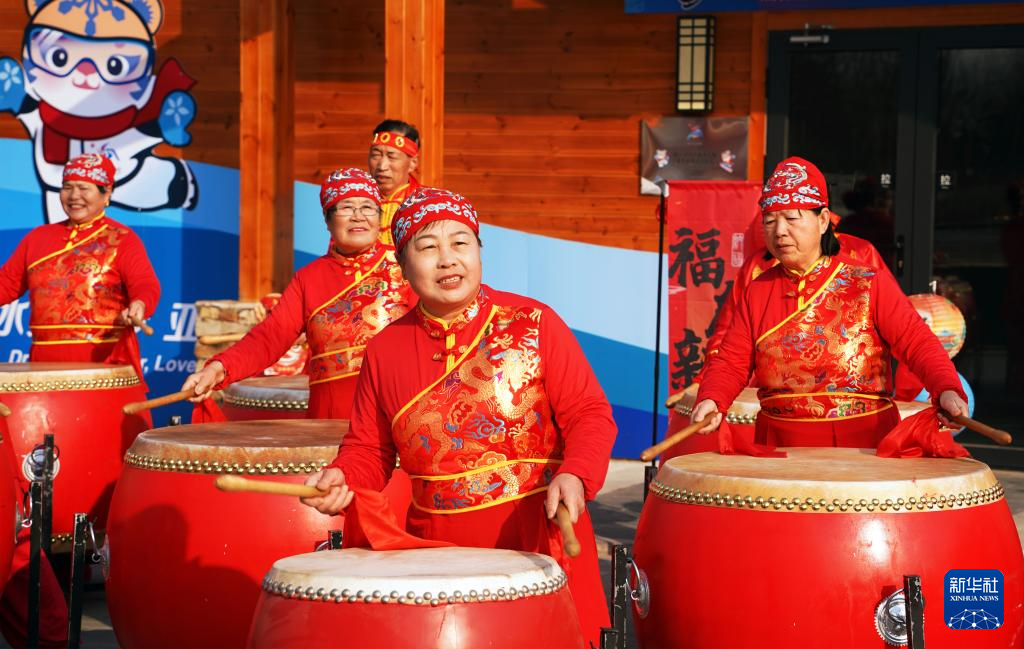 1月23日,民间艺人在河北省遵化市团瓢庄镇山里各庄村的集市上表演民俗节目。