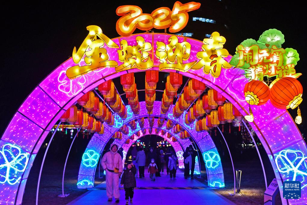 蛇年春节将至,各地张灯结彩,人们参加各种喜庆活动,欢欢喜喜迎新春。