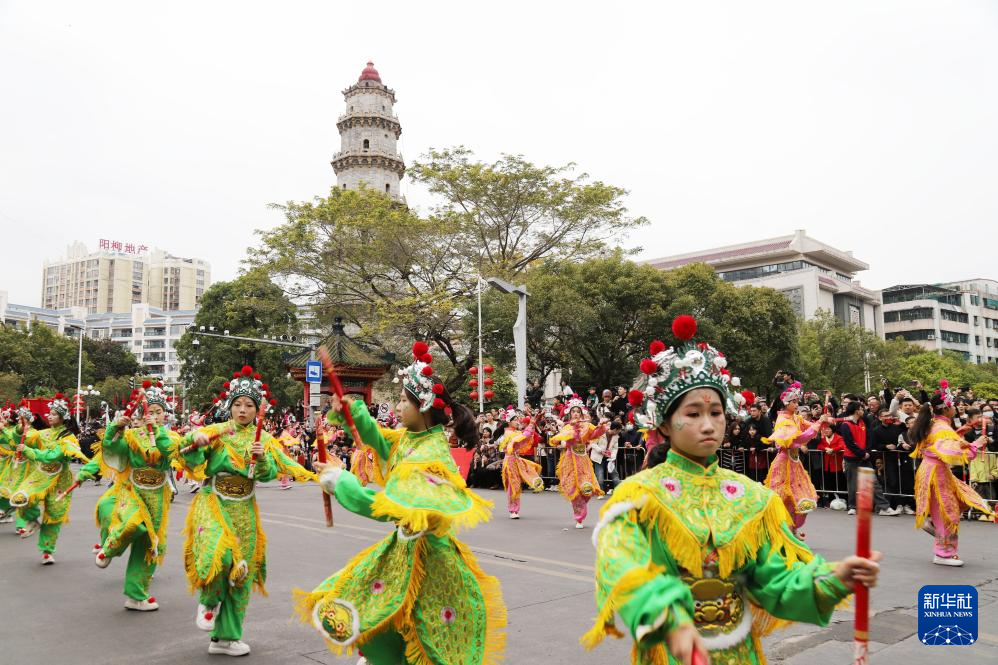 2月2日,英歌队在广东汕头潮阳区“中华英歌 舞动潮阳——2025年春节潮阳英歌嘉年华活动”中表演。