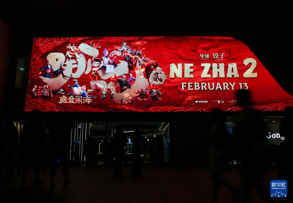这是2月11日在澳大利亚悉尼IMAX影院前拍摄的《哪吒之魔童闹海》大屏。