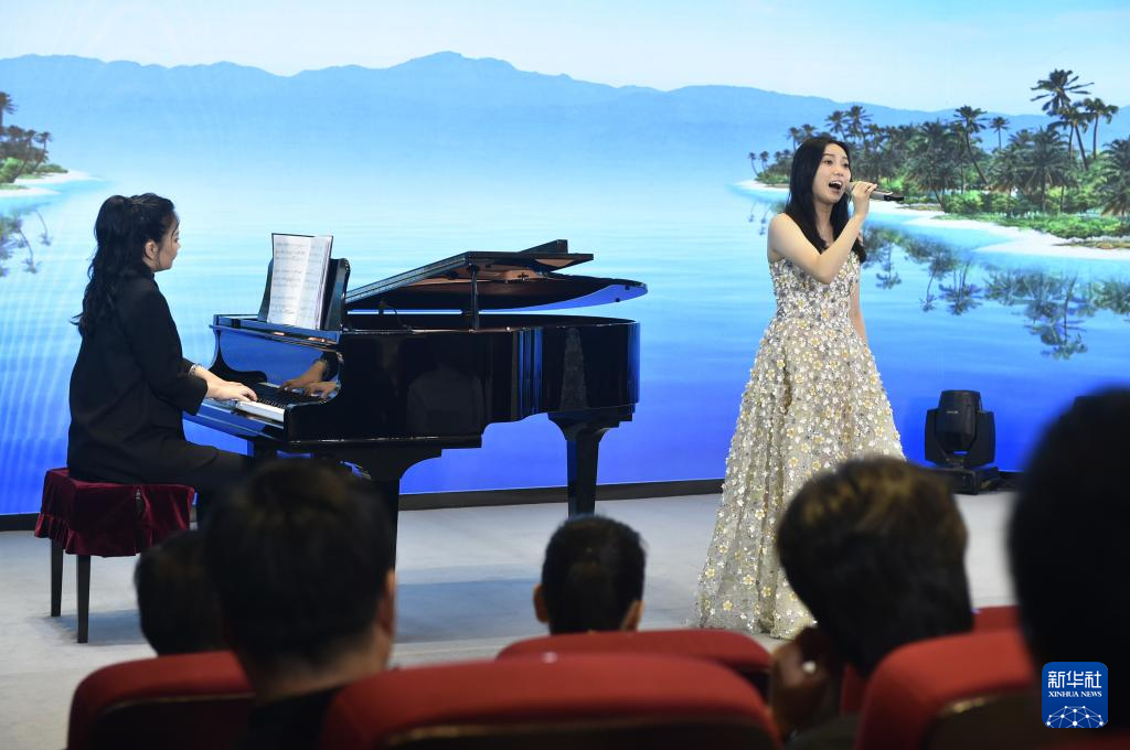 7月23日,青年女高音刘若熙(右)在音乐会现场分享。