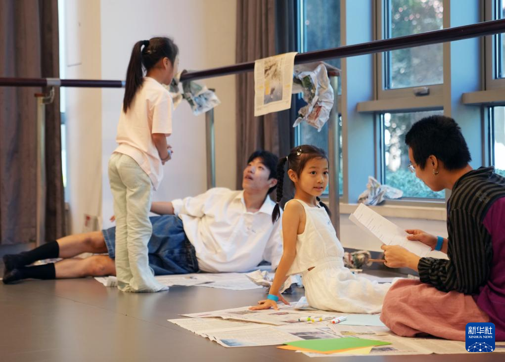 8月28日,在“为孩子编舞”工作坊现场,青年舞者通过与孩子们交流,搜集创作素材,激发创作灵感。