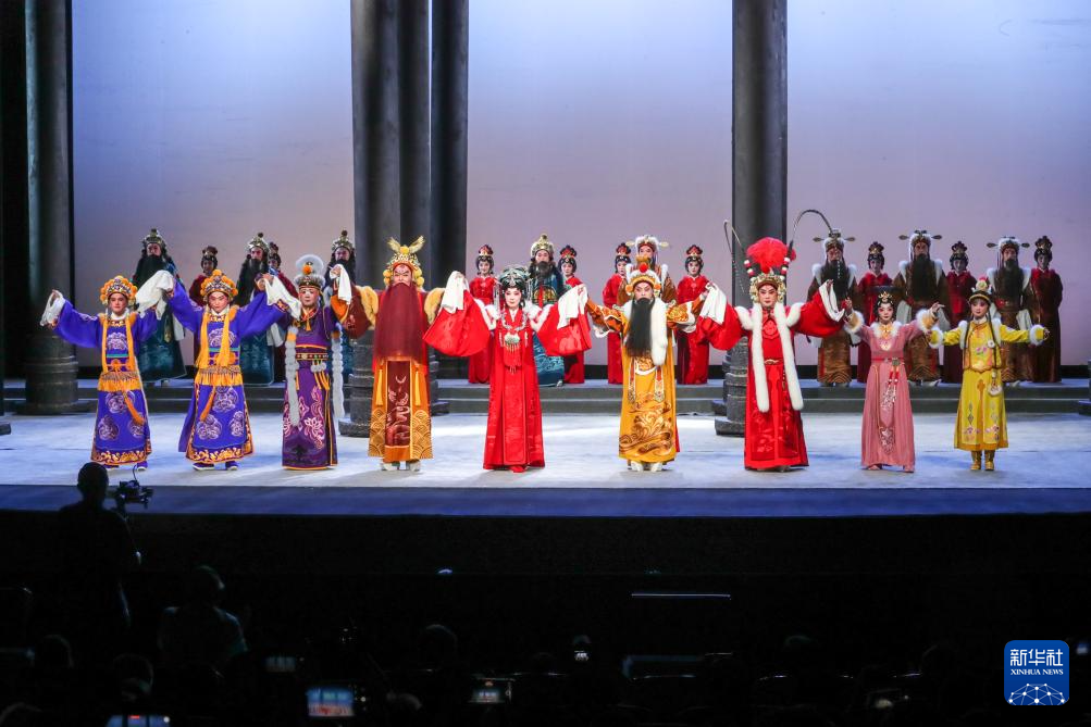 9月5日晚,演员在兰州音乐厅表演新编历史京剧《凉州辞》。