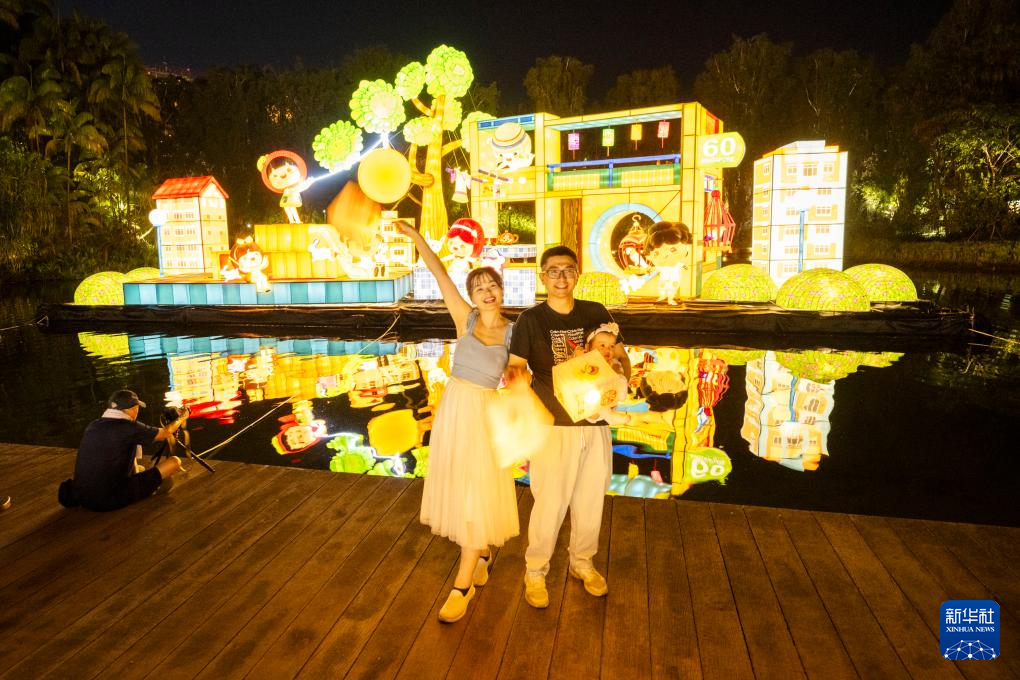 当日,新加坡滨海湾花园中秋节灯饰正式亮起。