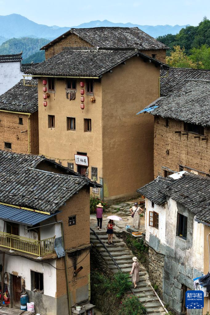 阳产村山多地少,以种植山核桃、板栗、茶叶等为主。过去,村庄无人问津,村民多外出打工,成了“空心村”。近年来,当地政府依托土楼和“晒秋”特色,大力发展乡村旅游业。村民们当向导、开民宿、办起农家乐,吃上了旅游饭。