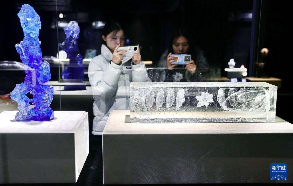 1月2日,游客在秦皇岛市玻璃博物馆参观游览。