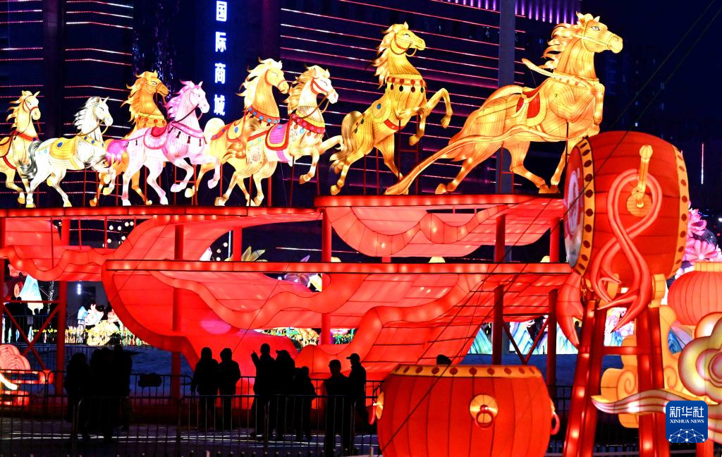 2月11日,市民在甘肃省定西市安定区新时代广场观赏花灯。