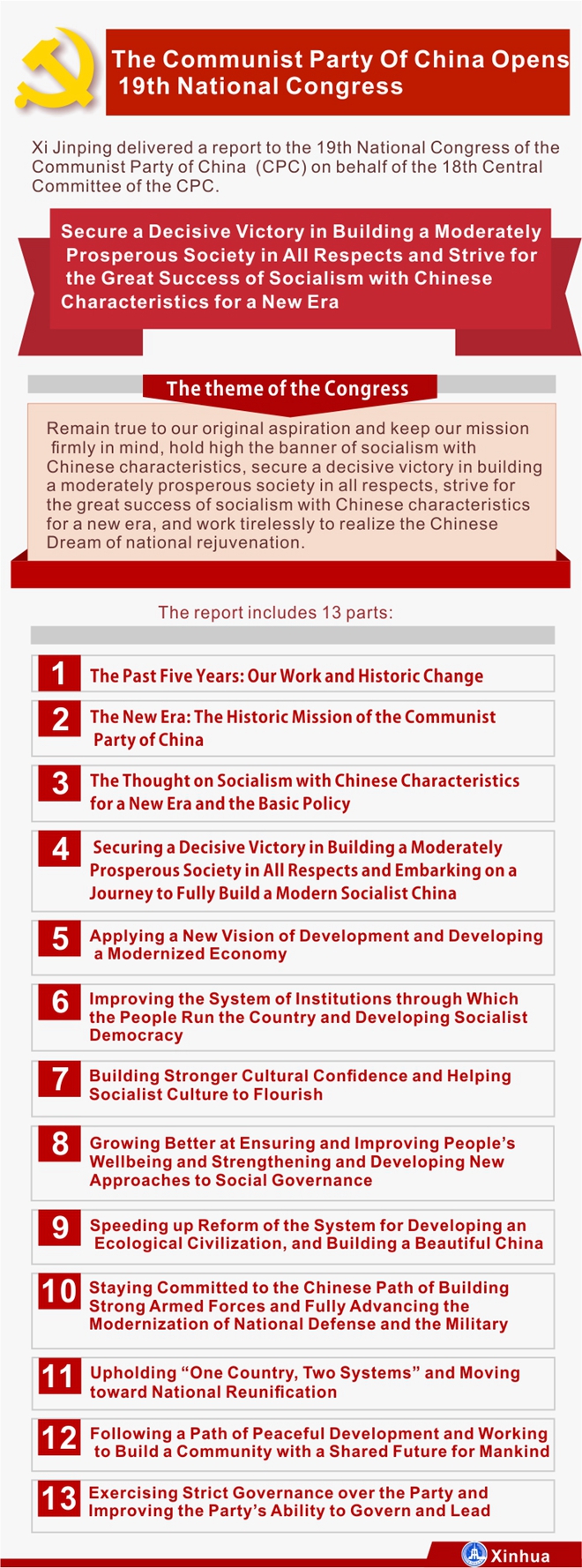 Graphics shows headlines of a report delivered by Xi Jinping to the 19th National Congress of the Communist Party of China (CPC) on Oct. 18, 2017.(Xinhua)